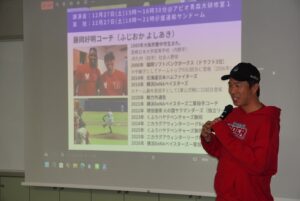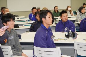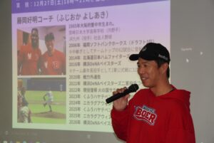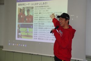 講師には元プロ野球選手・藤岡好明氏を迎え、講演と実技指導の二部構成で開催。